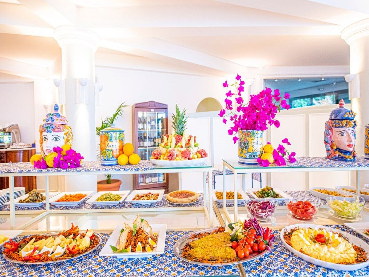 Dal 25 maggio al 21 settembre: ogni sera per cena angoli gastronomici a tema: il lunedì angolo con "focacce tipiche", il martedì angolo “tutto pesce", il mercoledì angolo dolce,il giovedì cena al tramonto con live music sulla "Terrazza sul mare", il venerdì cena tipica siciliana, il sabato pomeriggio "spritz pool party" vicino alle piscine con stuzzichini e cocktail con DJ sets e a sera cena elegante gourmet con piano bar, la domenica cena con angolo "cannoli con ricotta". Disponibile il Menu’ Baby. RISTO BABY: sono disponibili presso la sala ristorante seggioloni per i piccini. Su richiesta il personale di sala fornisce prodotti freschi quali brodo vegetale senza sale, passato di verdure, crema di riso, salsa di pomodoro senza sale, latte intero o parzialmente scremato, formaggini, formaggio grattugiato, yogurt e 2 tipi di pastina per bambini preparata al momento. Negli orari di chiusura della sala ristorante è possibile rivolgersi al bar.
