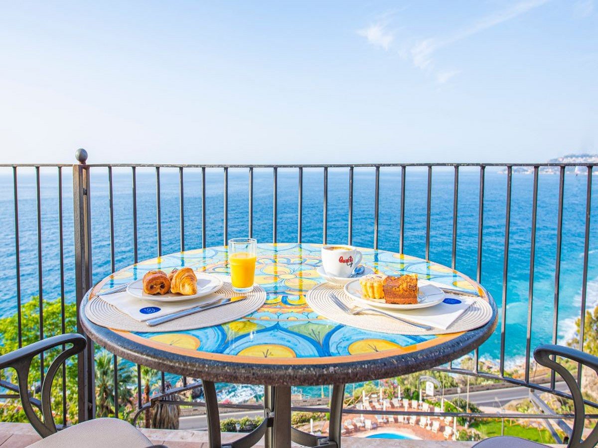 Elegant Suite Vista Mare: con una superficie di 50 mq, da 2 a 4 posti letto, è dotata di 1 camera da letto, 1 soggiorno con divano letto doppio, 1 ampio ingresso, 1 bagno e una terrazza vista mare di 30 mq con vasca idromassaggio. Disponibile con supplemento sulla tariffa della Luxury Room.