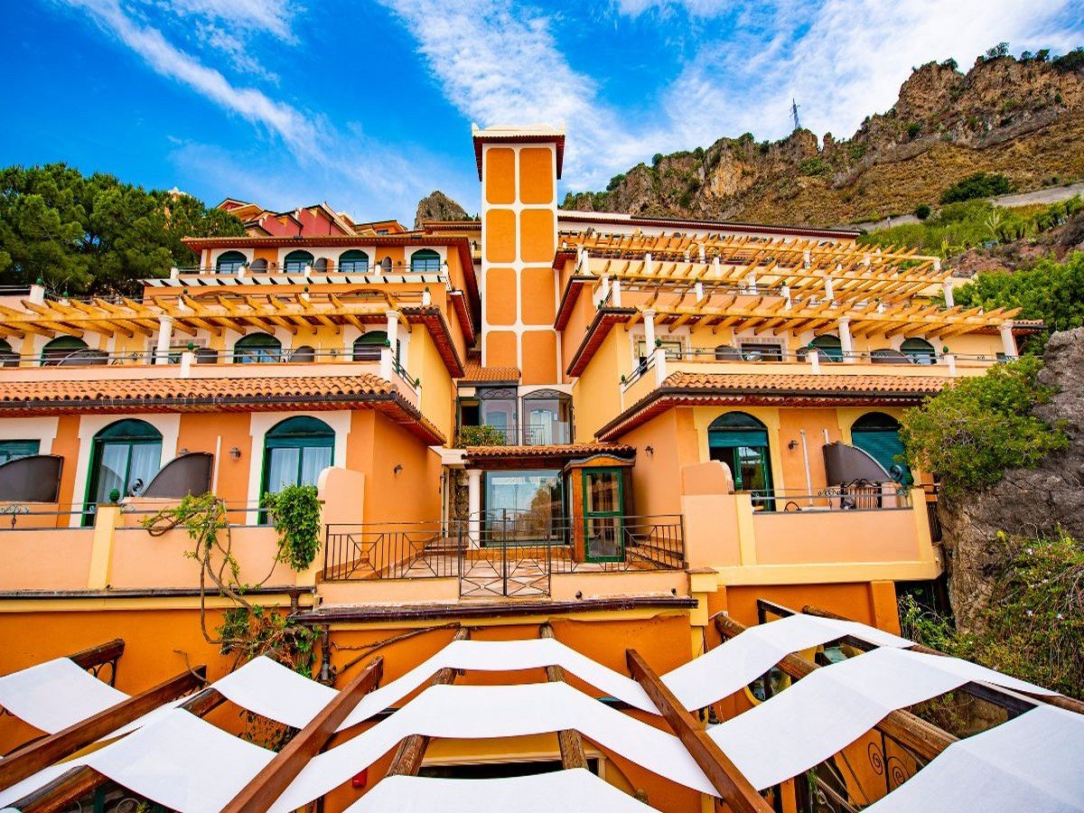 Baia Taormina CDSHotels , con i suoi ampi archi e pergolati, i suoi rivestimenti in pietra locale e rifiniture in cotto artigianale siciliano, si adagia sulla scogliera che sovrasta la baia di Taormina (ME) dalla quale prende il nome.