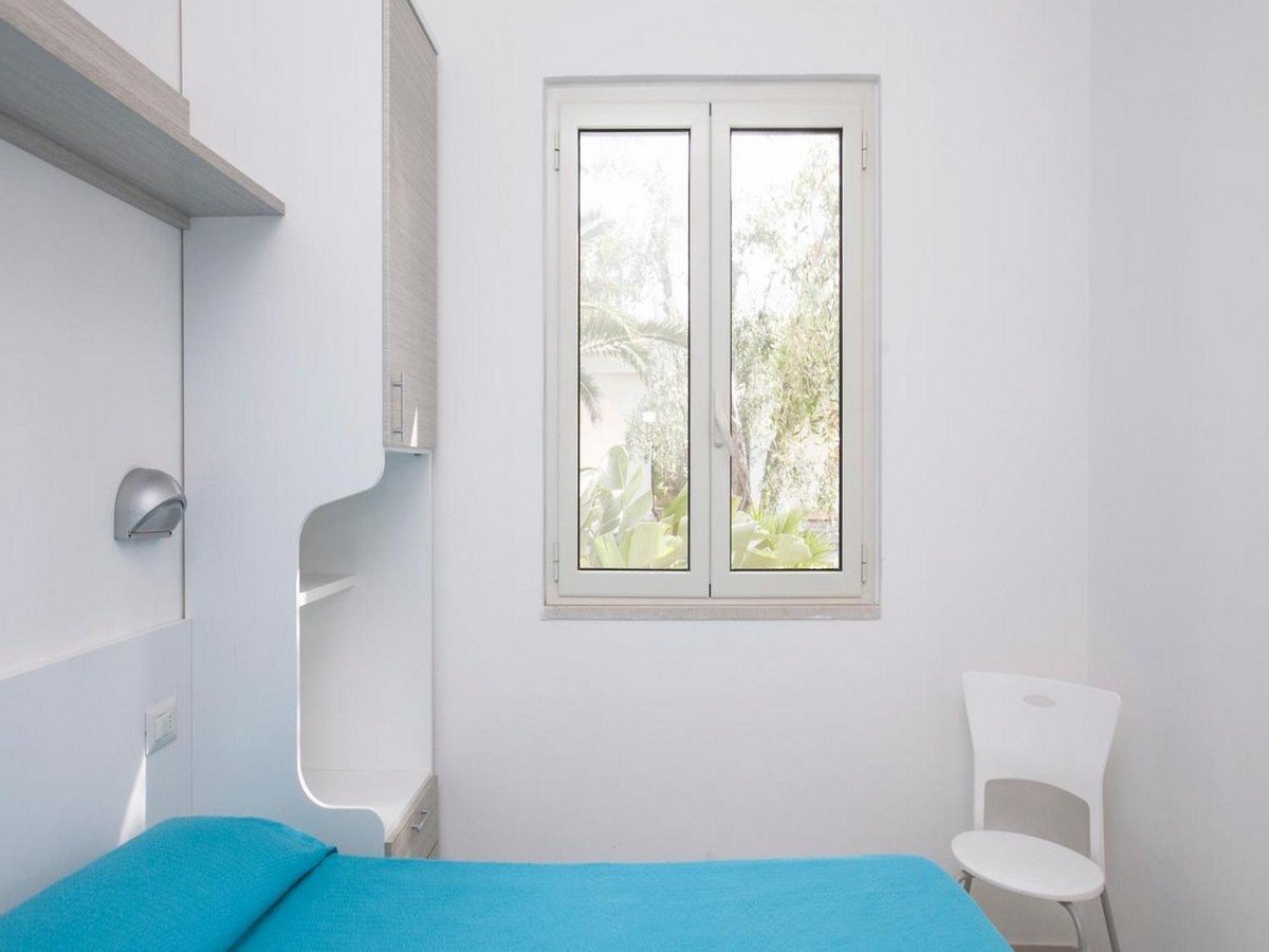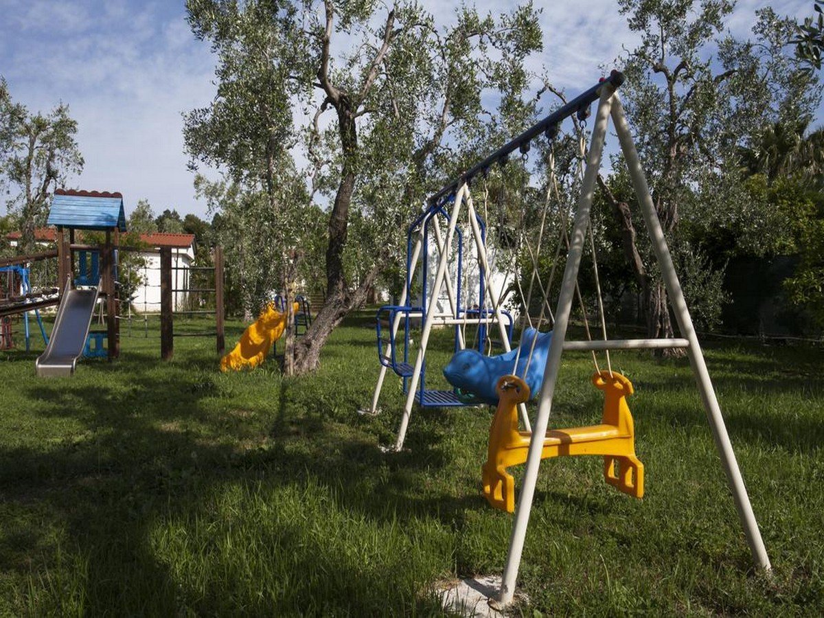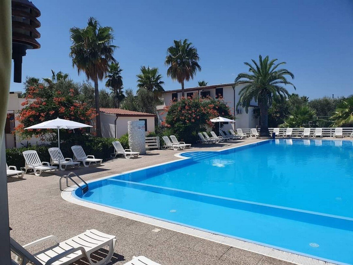 A disposizione dei clienti: ricevimento, bar, ristorante, ampia piscina con zona bimbi e zona idromassaggio circondata da ampio solarium attrezzato da comodi lettini, sorvegliata da bagnino negli orari di apertura, WiFi gratuito nelle zone comuni. Ogni appartamento ha il suo parcheggio, non custodito, numerato con tettoia per proteggere l'auto dal sole. Il valido team di animazione allieterà le giornate di grandi e piccini con divertenti attività e coinvolgenti spettacoli serali. Per i più piccoli grazie al miniclub impareranno a utilizzare la loro fantasia grazie a divertenti lavoretti. Lavatrice da 7kg a gettoni con detersivo incluso, a pagamento. Campo da Green volley. In un’ampia zona verde immersa tra ulivi e palme i vostri bambini potranno correre e giocare con scivoli e altalene in compagnia di altri bambini. Servizio spiaggia sulla Baia San Lorenzo (servizio facoltativo) a 7 minuti a piedi (550 metri), oppure 1 minuto di auto + 3 minuti a piedi dal parcheggio. Per raggiungere a piedi il lido balneare si esce dal villaggio dall’uscita laterale, vicino al ristorante, e si percorre a piedi una strada. Si attraversa la litoranea fino a raggiungere un sentiero in discesa che arriva fino in spiaggia (totale 7 minuti). Spiaggia libera Baia San Lorenzo a 6 minuti a piedi, oppure 1 minuto di auto + 1 minuto a piedi dal parcheggio (550 metri)