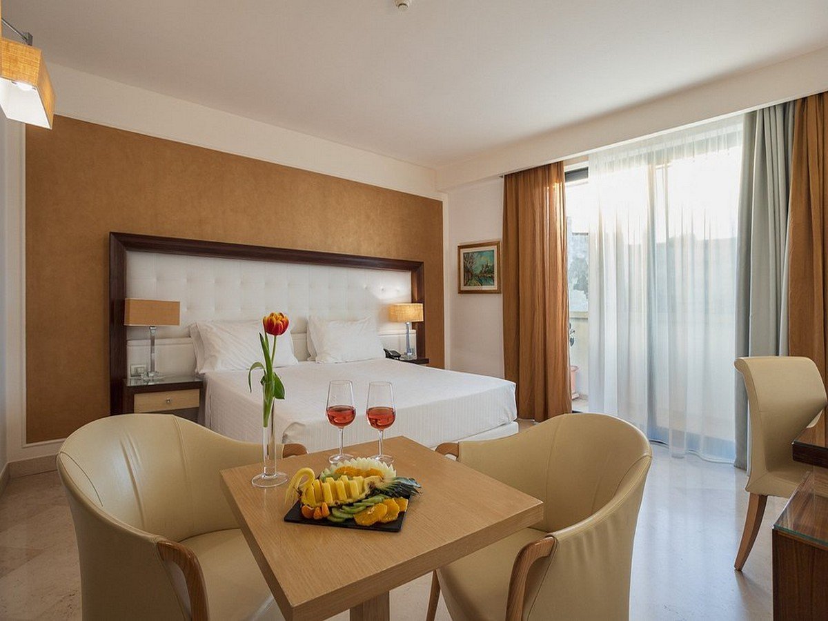 Le camere moderne e curate in ogni dettaglio, sono dotate di aria condizionata, Wi-Fi e balcone privato, garantendo comfort e privacy sia a coppie che a famiglie. Vi sono a disposizione anche camere per diversamente abili (ubicate una per piano) che possono ospitare al massimo 2 persone. Inoltre, le camere hanno un letto King Size matrimoniale, cassaforte, frigo in camera, asciugacapelli e TV.