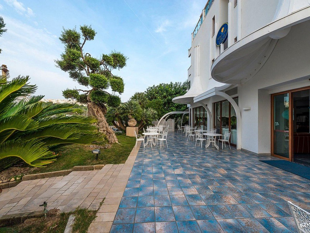 Récemment rénové, notre hôtel 4 étoiles, qui se dresse sur le promontoire du Gargano, dans une position panoramique surplombant la baie de La Marina, une crique naturelle entre la falaise et le trébuchet de Montepucci, au pied du village caractéristique de Peschici, à seulement 150 mètres de la plage et à 1,5 km du centre de ce magnifique village, à 700 mètres du port de Peschici, il offre à ses hôtes des environnements élégants et accueillants immergés dans la végétation luxuriante des jardins bien entretenus, où les plantes tropicales trouvent la bonne harmonie , oliviers séculaires et fleurs multicolores. Une résidence confortable, à l'architecture typiquement méditerranéenne, dans laquelle l'atmosphère élégante offerte par les espaces communs est la même qui rend les chambres accueillantes et raffinées.