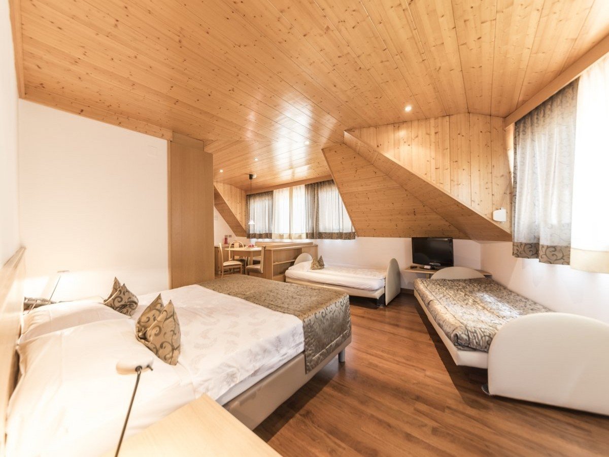 Le camere dell’hotel sono state progettate per cogliere il senso più profondo dello stare bene a Predazzo e sono munite di tutti i confort: bagno privato, wi-fi gratuito, cassetta di sicurezza, aria condizionata, TV satellitare, asciugacapelli, frigo bar, alloggi anallergici.