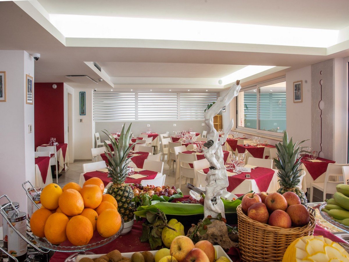 L'ospite potrà scegliere tra il trattamento di camera e colazione o mezza pensione. La prima colazione continentale è preparata con ingredienti sani e di qualità, con angolo “fitness” per gli amanti dello sport. La cena sarà arricchita da sapori della cucina locale con un buffet di antipasti ricco di piatti molto gustosi, uno show cooking “” e tante specialità di carne e pesce.