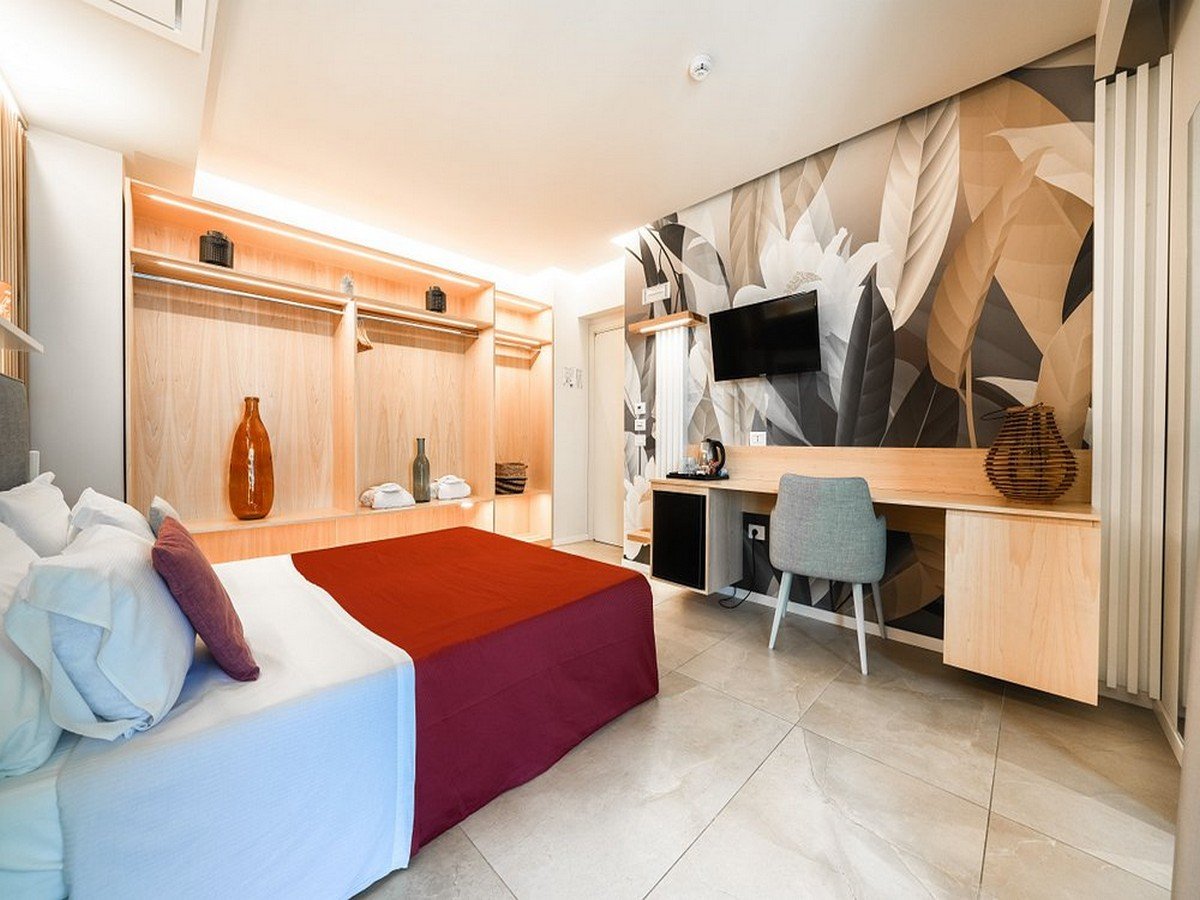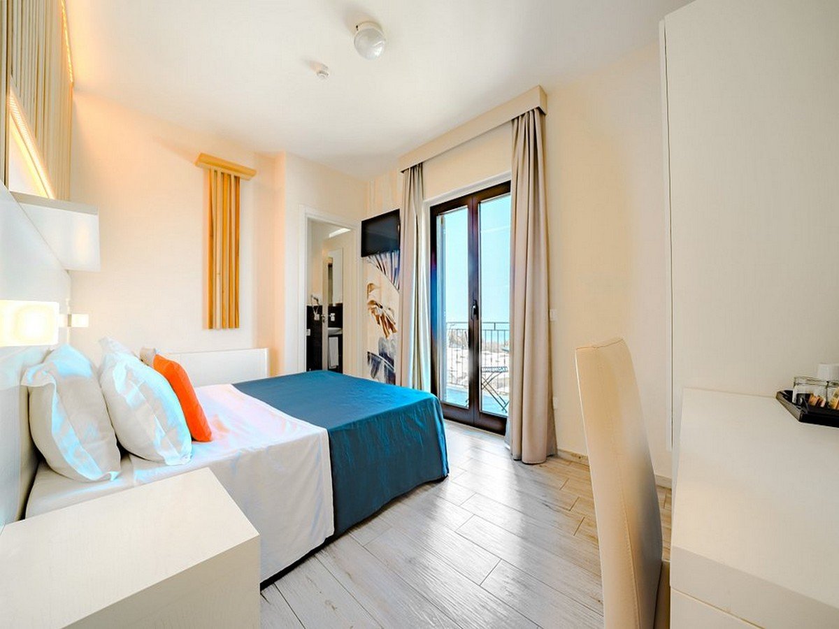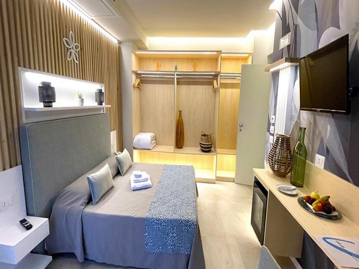 Le camere si caratterizzano per lo stile essenziale e accogliente con colori delicati che richiamano i toni del mare e delle spiagge. La struttura dispone diverse tipologie: camere Classic, camere Classic Vista Mare (solo su richiesta), Comfort e Superior. Le camere sono dotate di Wi-fi, Frigobar, aria condizionata, TV Lcd, telefono, cassaforte, bagno privato, phon