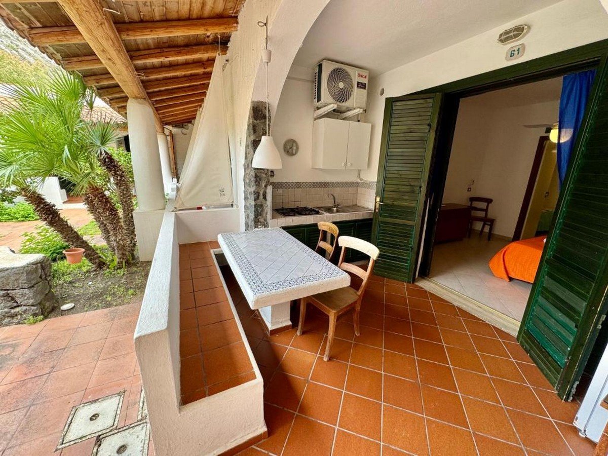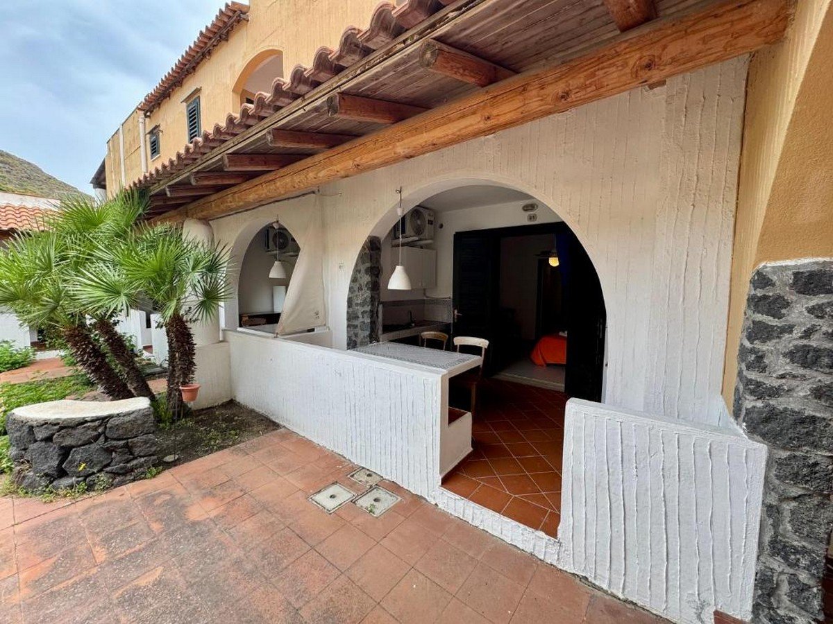 Monolocale con piccolo patio Eoliano, è composto da soggiorno con tavolo e cucina in muratura, ingresso in camera matrimoniale con disimpegno e bagno con doccia privato;