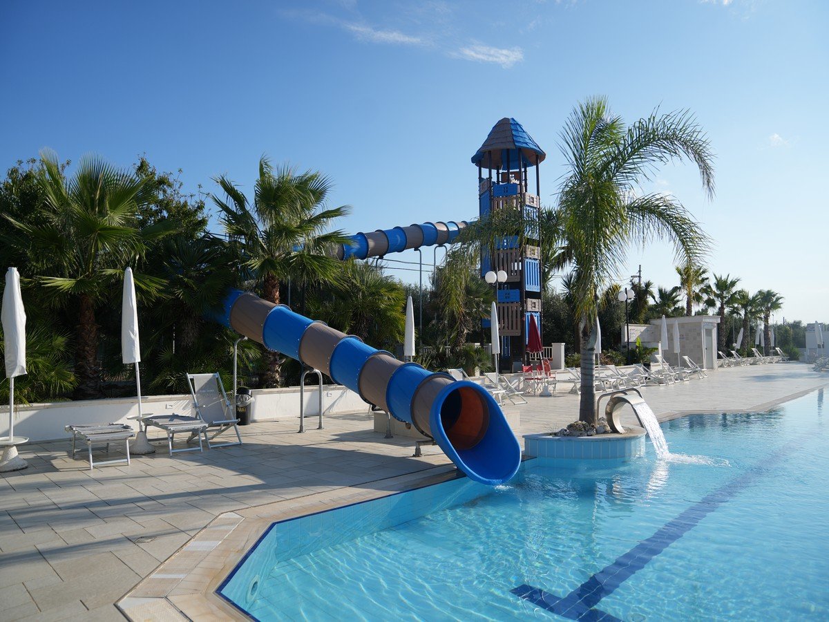 La struttura dispone di reception, bar all’aperto, ristorante climatizzato, sala TV, parco giochi, piscina con zona per bambini, animazione e miniclub, campo polivalente da tennis /calcetto, navetta da e per la spiaggia, collegamento Wi-Fi nelle zone comuni, parcheggio interno coperto non custodito fino ad esaurimento, il villaggio si compone di vari edifici i immersi nel verde e da una zona principale dove sono situati tutti i servizi e le attrezzature sportive. Lo staff di animazione propone intrattenimento diurno e serale per adulti e bambini, spettacoli e cabaret, tornei sportivi, corsi collettivi e tante altre attività ludico ricreative. Per i più piccoli, dai 3 ai 10 anni, Mini Club dedicato ad orari prestabiliti. Navetta da/per la spiaggia con i seguenti orari: mattino 9, 10.30, 11.45 e 12:30 il pomeriggio alle 15:30, 16.30, 17:30 e 18:30. Servizio spiaggia a pagamento presso Lido convenzionato (lido Pirola Beach) con pagamento in agenzia. Navetta da/per la spiaggia inclusa distanza 1850 mt.