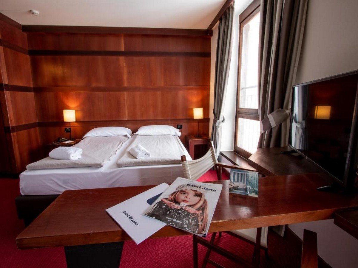 136 le camere arredate in stile montano rinnovate completamente nel 2022, suddivise tra varie tipologie in doppie, triple e quadruple (con letto a castello), alcune delle quali con balcone , sono dotate di tutti i comfort: servizi privati con doccia e asciugacapelli, telefono, Tv sat, minifrigo, wi-fi, cassetta di sicurezza.