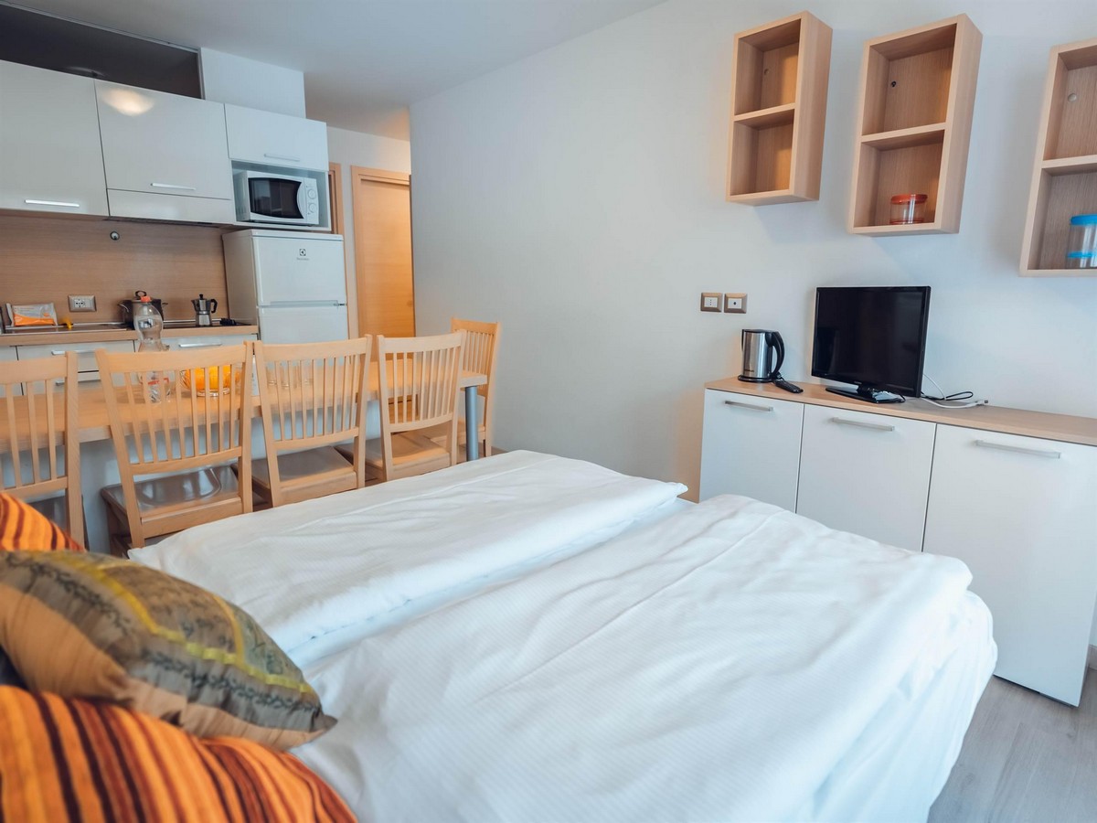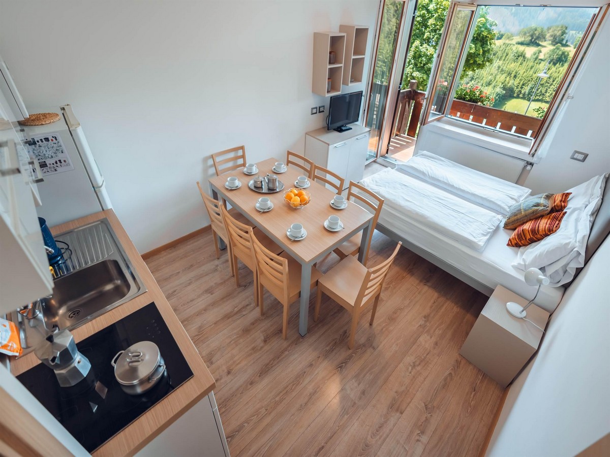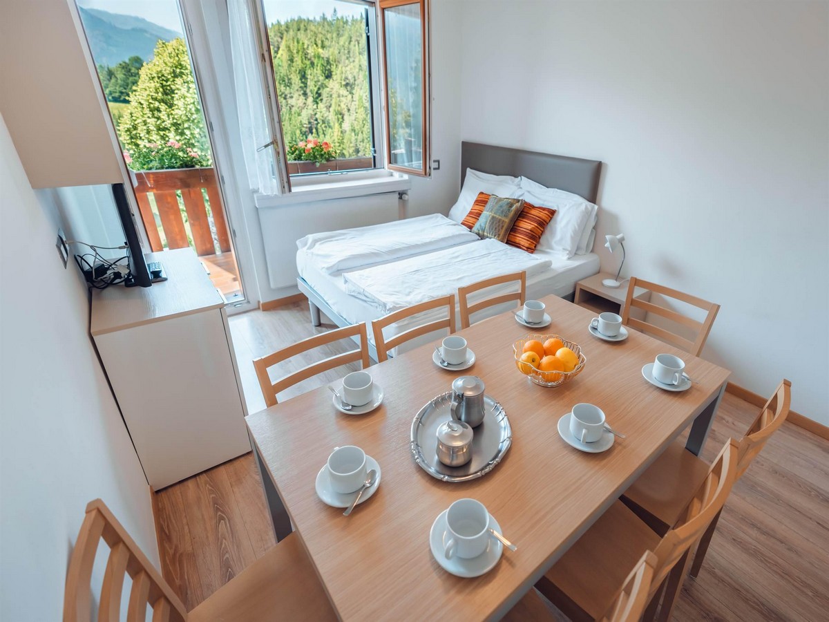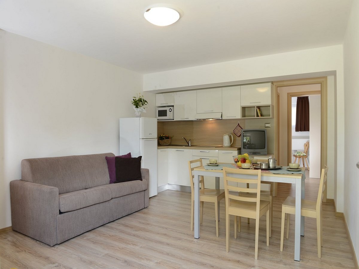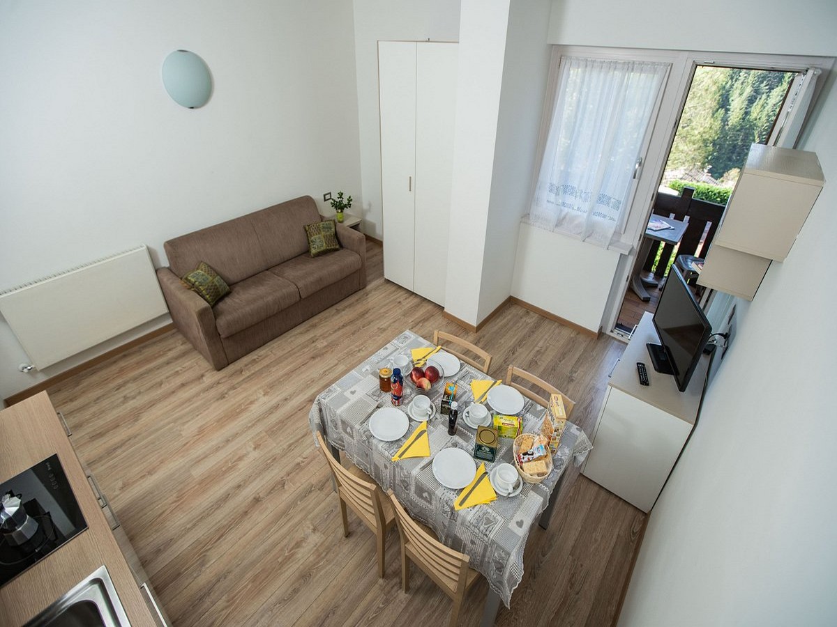 Servizi inclusi: balcone esterno in ciascun appartamento, garage coperto, deposito sci, connessione internet wi-fi in ogni appartamento.