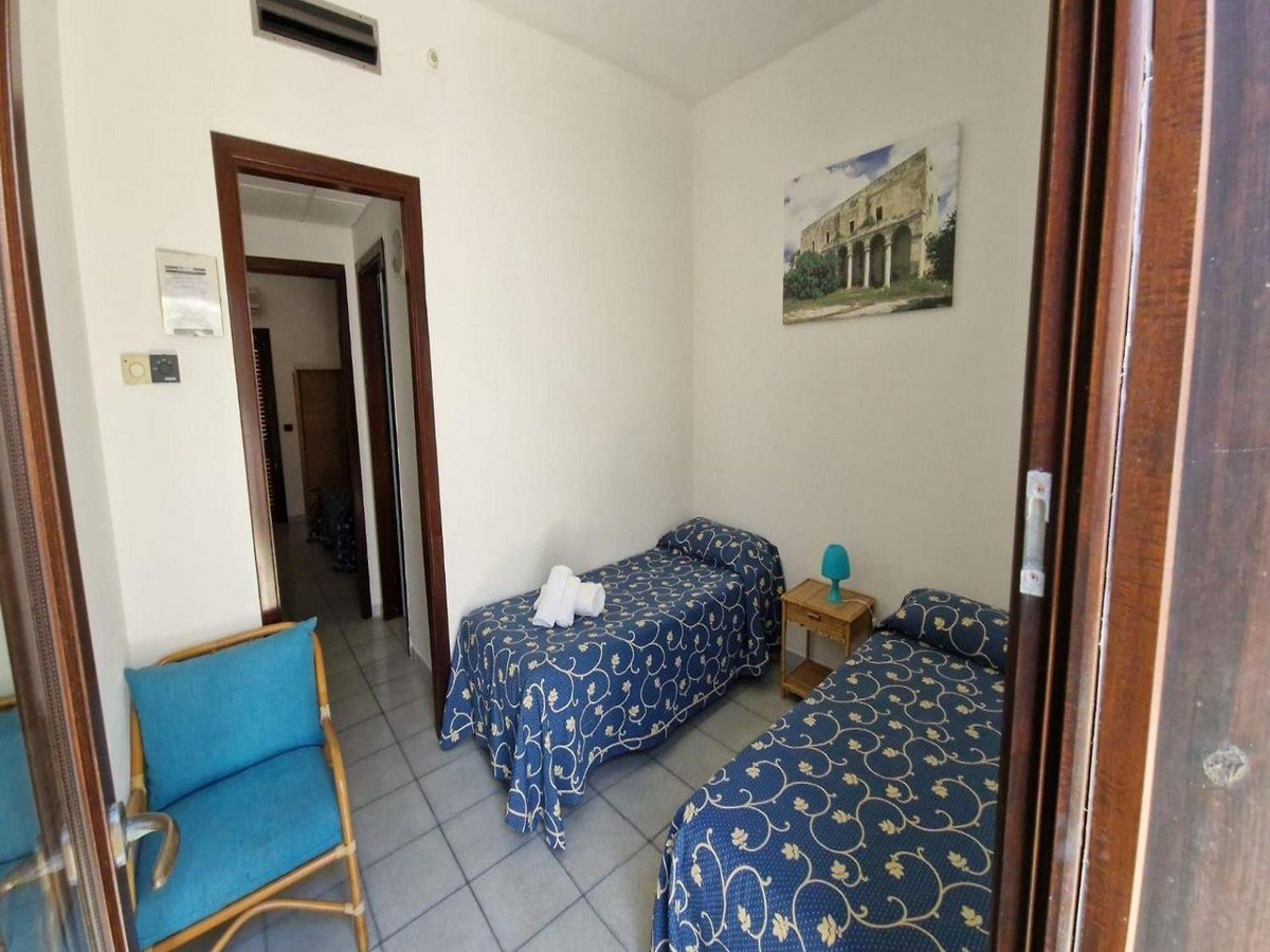 L’albergo dispone di 48 camere, suddivise tra doppie, triple e quadruple, tutte situate a piano terra per garantire accessibilità e comodità. La struttura, interamente bianca, si integra perfettamente nel paesaggio tipico salentino, richiamando il fascino mediterraneo con un design armonioso che si fonde con il mare e la pineta circostante.