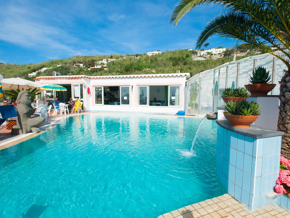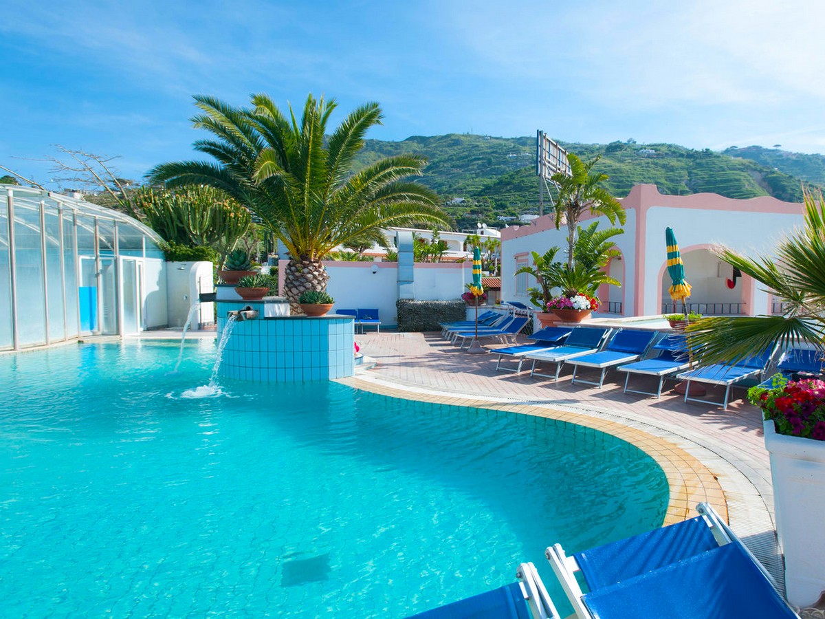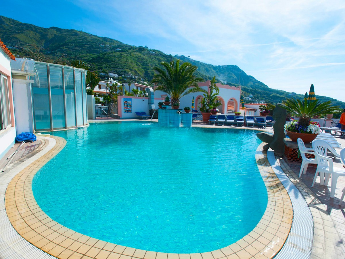 Situato a sud est dell’isola d’Ischia a Forio, in una zona tranquilla, tra gli opulenti vigneti ischitani, a soli 500 mt. dalla Baia di Sorgeto, famosa per le sue vasche naturali d’acqua termale direttamente nel mare, che offrono la possibilità di fare il bagno anche nei periodi meno caldi. Questo bellissimo albergo e' immerso una splendida vegetazione ricca di piante grasse, buganvillee ed una splendida flora mediterranea. Un vero e proprio villaggio che offre servizi quali animazione per adulti, ampi spazi ricreativi e ottima cucina, animazione per bambini e non solo, e' un albergo consigliabile ad una vacanza sia per famiglie che per giovani.