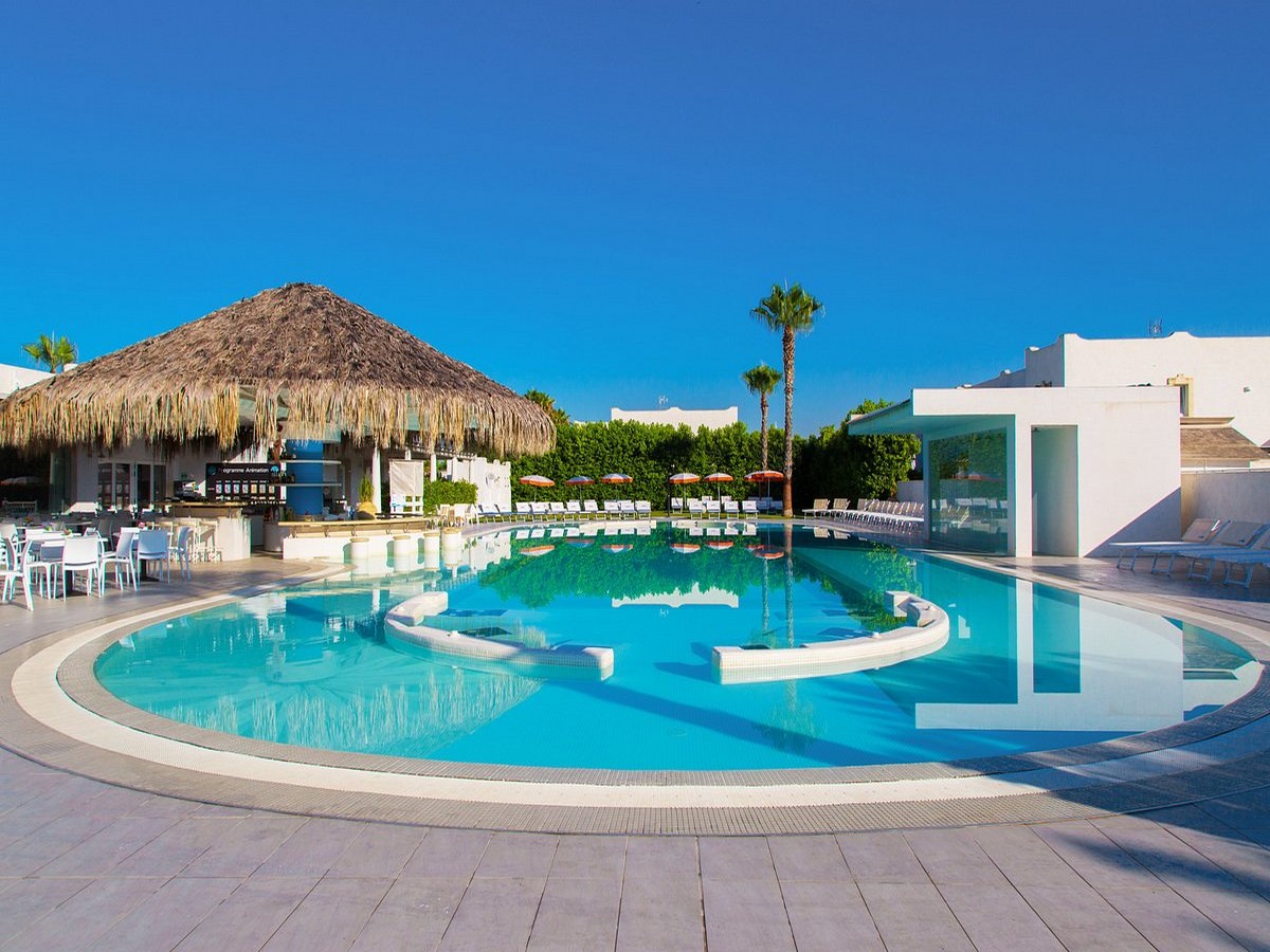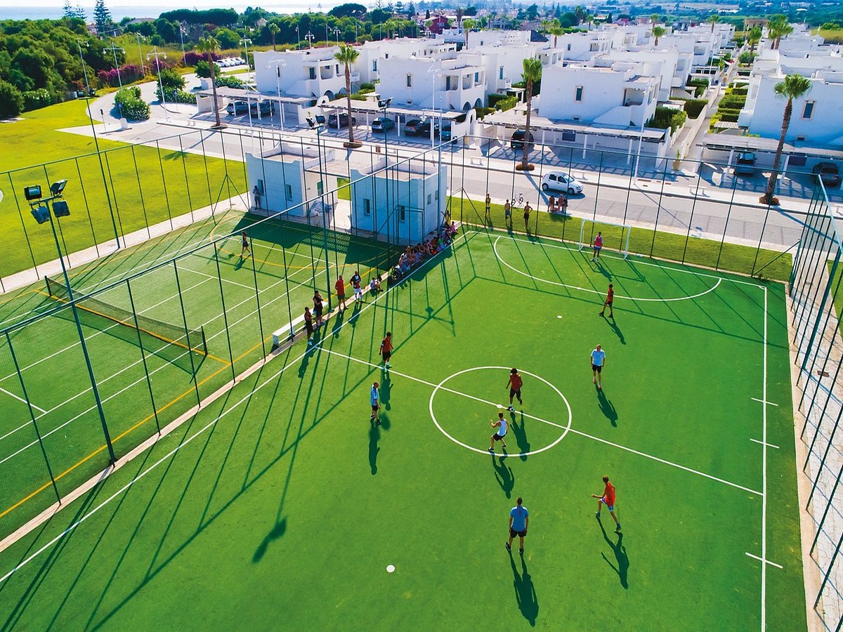 L'utilizzo delle piscine per adulti con idromassaggio con area dedicata ai bambini; L'uso del campo da calcio a 5 (sintetico), campo polivalente da tennis, campo da green volley, ping pong, percorso per jogging.; Animazione diurna e serale con corsi collettivi, tornei, cabaret, spettacoli in anfiteatro. Il resort si trova a 300 metri dalla spiaggia, caratterizzata da sabbia fine e mare dolcemente digradante. Ideale per la balneazione dei più piccoli, la spiaggia è facilmente raggiungibile a piedi o con servizio navetta gratuito. Nota bene: lo stabilimento balneare è aperto dalle 8:30 alle 19. Il servizio spiaggia è incluso nella Tessera Club a partire dalla 4ª fila (1 ombrellone + 2 lettini a camera).