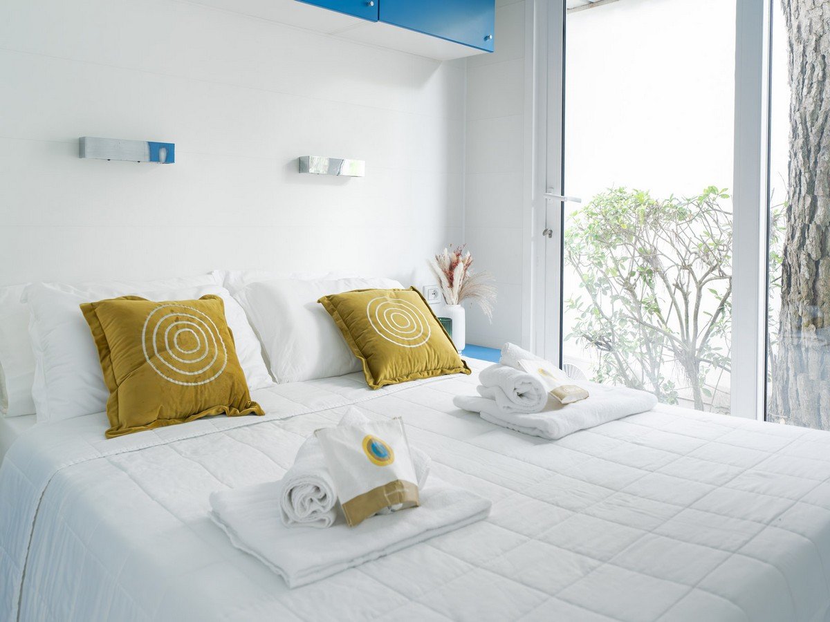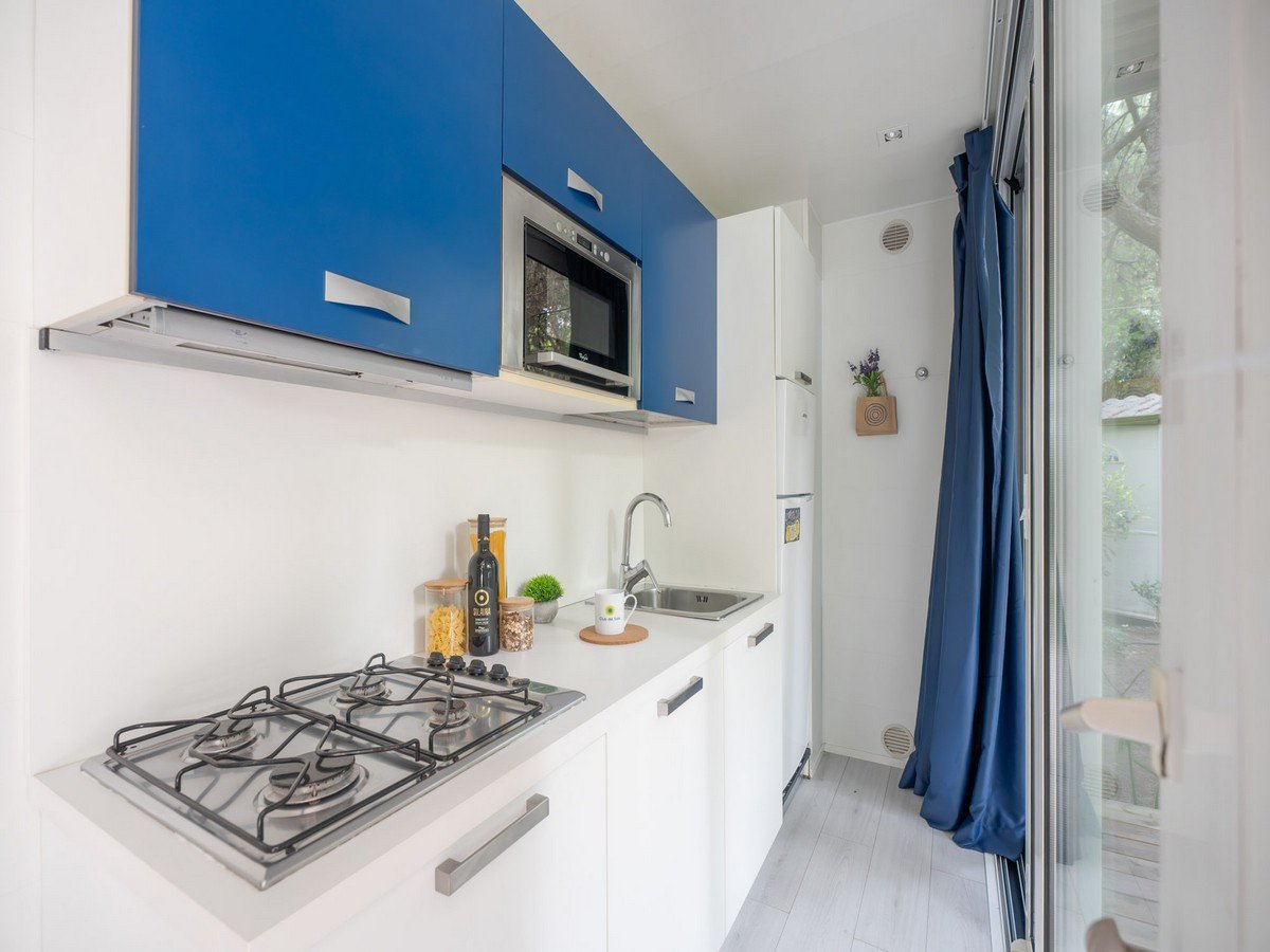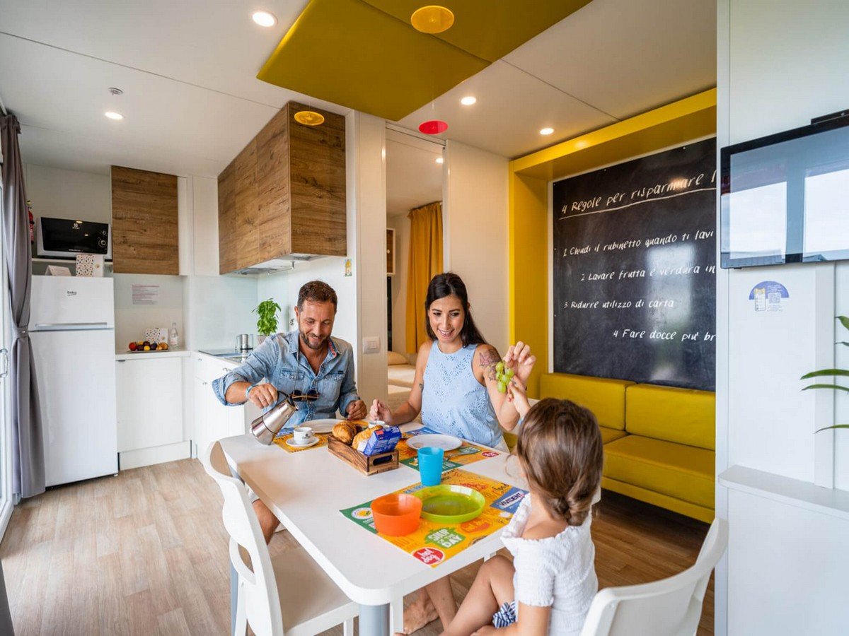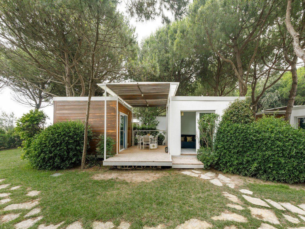 Lodge: casa mobile semplice ed accogliente, posizionata in una delle aree più verdi e tranquille del villaggio. 1 camera da letto matrimoniale, 1 camera con un letto singolo e uno a soppalco con spondina (in alcune unità sono presenti due letti singoli a terra), soggiorno con angolo cottura, 1 bagno con cabina doccia, ampia veranda con tavolo e sedie. Aria condizionata/riscaldamento, Wi-fi, TV SAT.