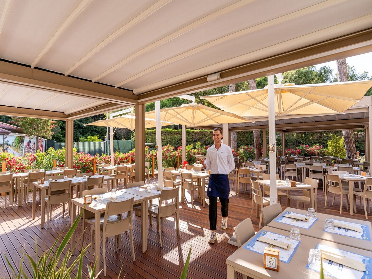 Vicino alle piscine c’è il ristorante-pizzeria che propone un ricco menù a base di specialità venete, piatti di carne e pesce, le migliori ricette della cucina mediterranea e ottime pizze. Il villaggio propone anche una comoda Formula Hotel con la possibilità di soggiornare in mezza pensione o pensione completa.